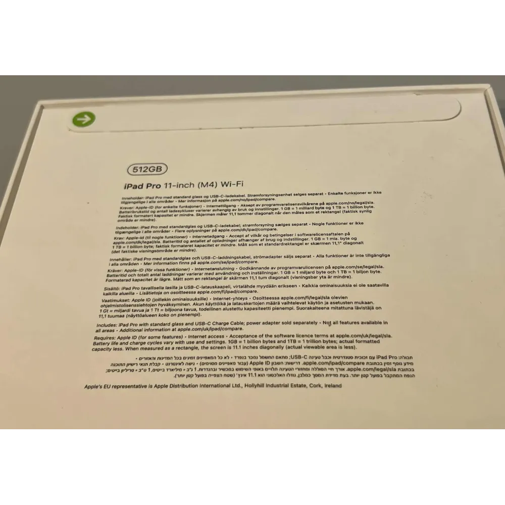 Nyeste iPad Pro 11" med M4-chip, hele 512GB lagring og Wi-Fi. Kommer ubrukt i original eske (esken har noen merker, men innholdet er nytt).