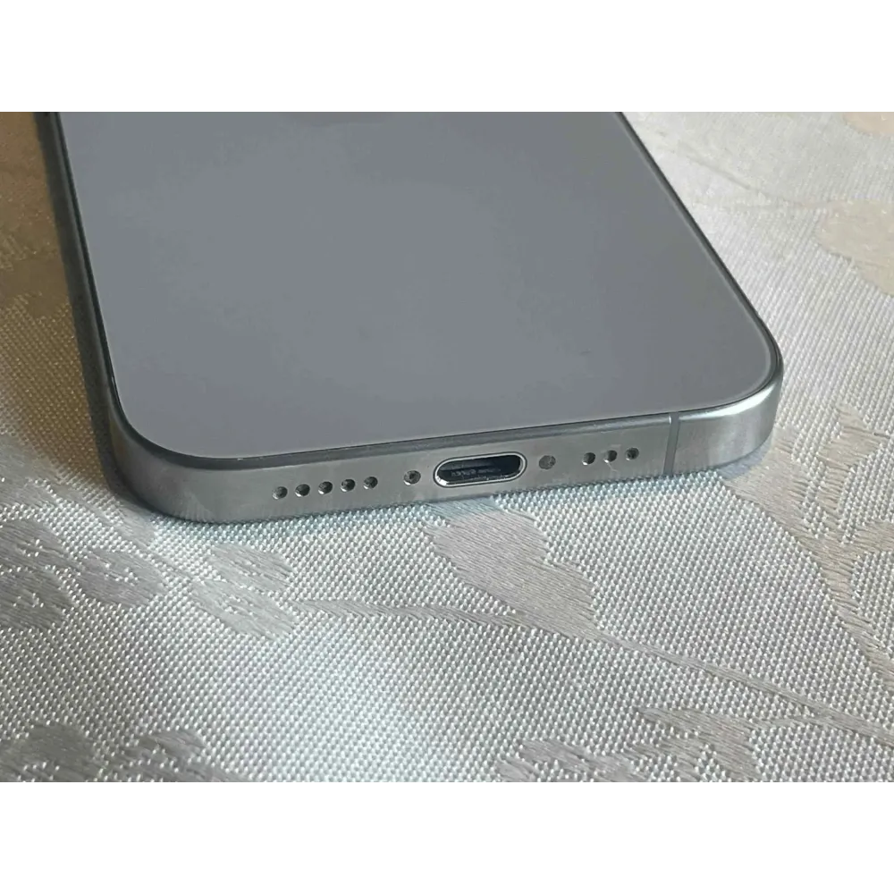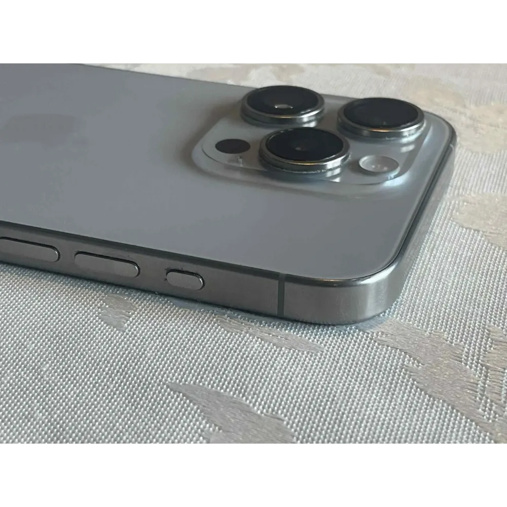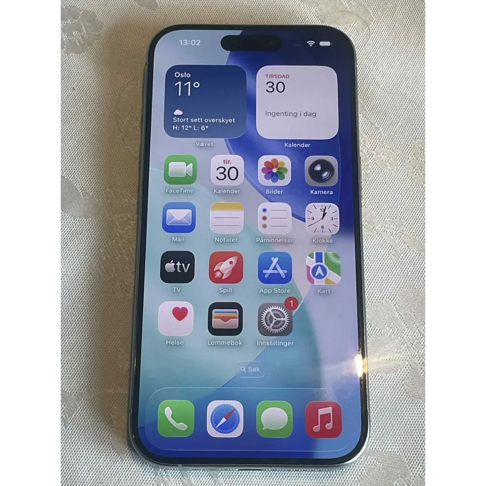 Kraftig og lett iPhone 15 Pro i titanium, med 128GB lagring og 88 % batterikapasitet. Litt brukstegn, men fullt funksjonell.