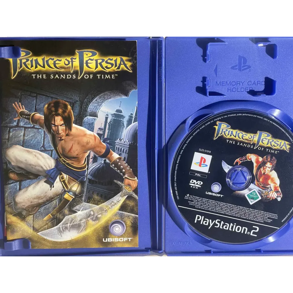 I Prince of Persia: The Sands of Time spiller du som prinsen som får kontroll over “Sands of Time”-magien. Spillet kombinert plattforming, kamp og evnen til å spole tilbake tid for å fikse feil. Det ble lansert i 2003 av Ubisoft, og denne kopien ser ut til å være PAL-versjon med “Platinum” utgave (sølvramme).