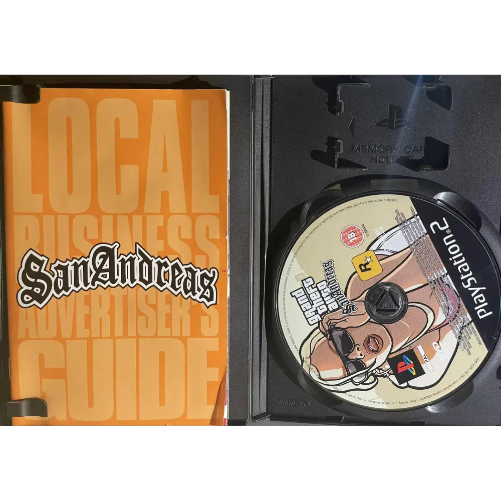 Utviklet av Rockstar North og utgitt av Rockstar Games i 2004. Du spiller som Carl “CJ” Johnson som vender hjem til Los Santos og trekkes inn i gjengoppgjør, korrupsjon og store kupp. Spillet byr på enorm frihet: kjør, fly, tilpass kjøretøy, tren, spis, kle deg og bygg ferdigheter. Historien er filmatisk og spekket med minneverdige figurer, oppdrag og radiosendinger. PS2-versjonen i PAL-utgave (standard svart etikett) er den mest klassiske varianten for europeiske samlere. Lokalt flerspiller i minispill, ellers enspiller fokus.
