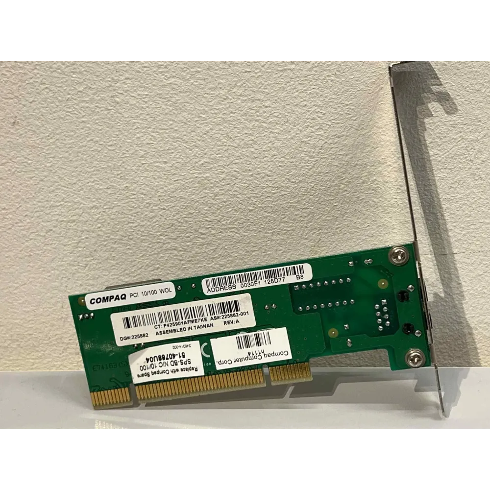 Originalt Compaq nettverkskort for stasjonære PC-er med vanlig PCI-grensesnitt (ikke PCI-Express). Kortet bruker MPX ENS038B brikkesett og støtter både 10 Mbps og 100 Mbps hastigheter.