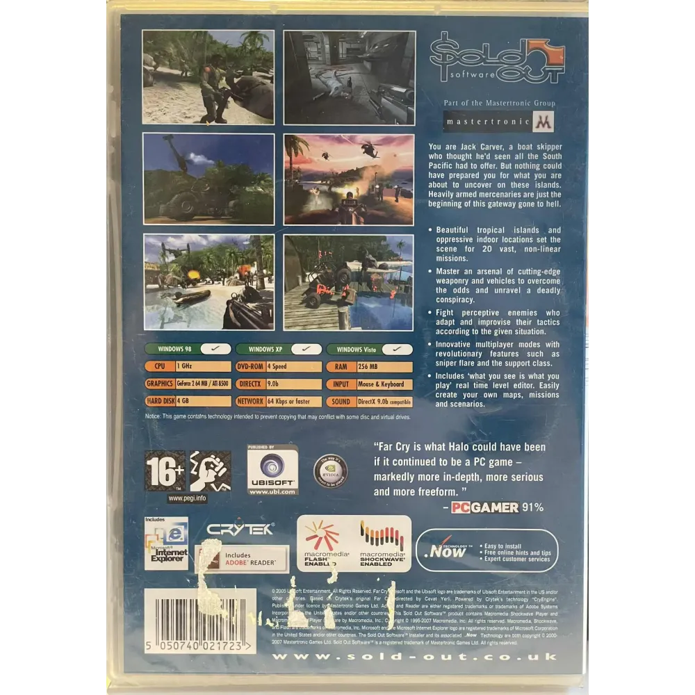 Utforsk tropiske øyer, bekjemp leiesoldater og overlev eksperimenter som gikk galt – Far Cry er skytespillet som startet alt. Med åpen verden, intelligent fiende-AI og nydelig grafikk fra Crytek satte det en ny standard for PC-spill i 2004.