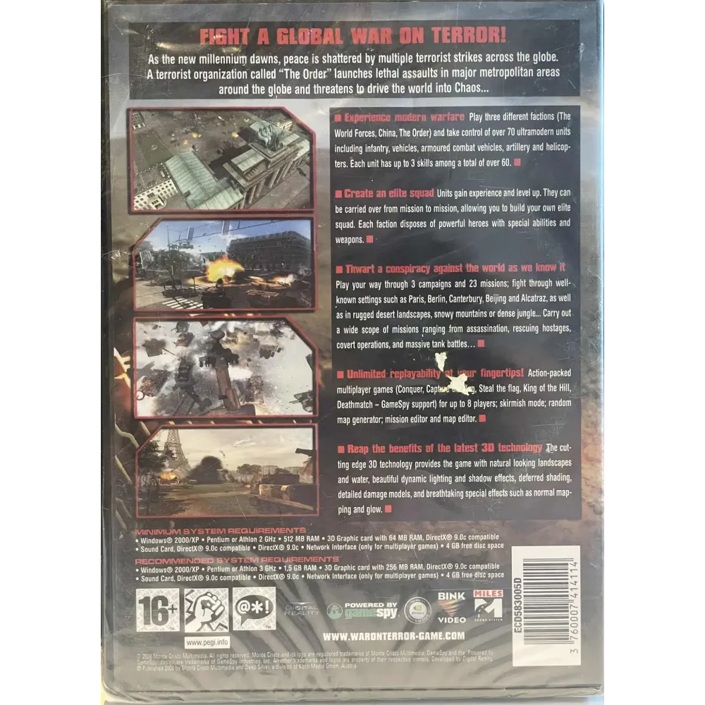 Med over 60 oppdrag og flerspillerstøtte via LAN/internett, leverer War on Terror en taktisk utfordring for fans av Command & Conquer og World in Conflict.