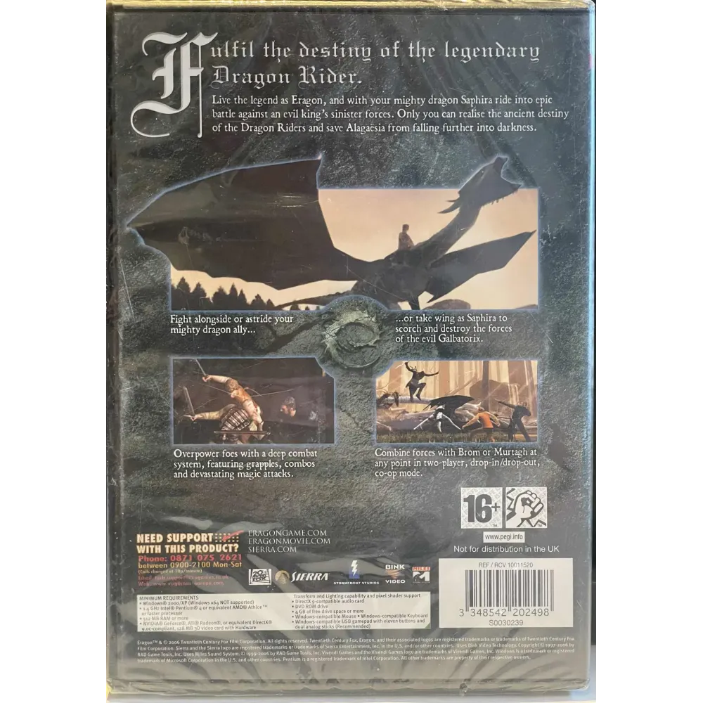 Opplev eventyret fra filmen og boken i Eragon, et actioneventyr med drager, magi og heltemot. Kjemp mot den onde kongen Galbatorix med sverd, ild og vingene til dragen Saphira!