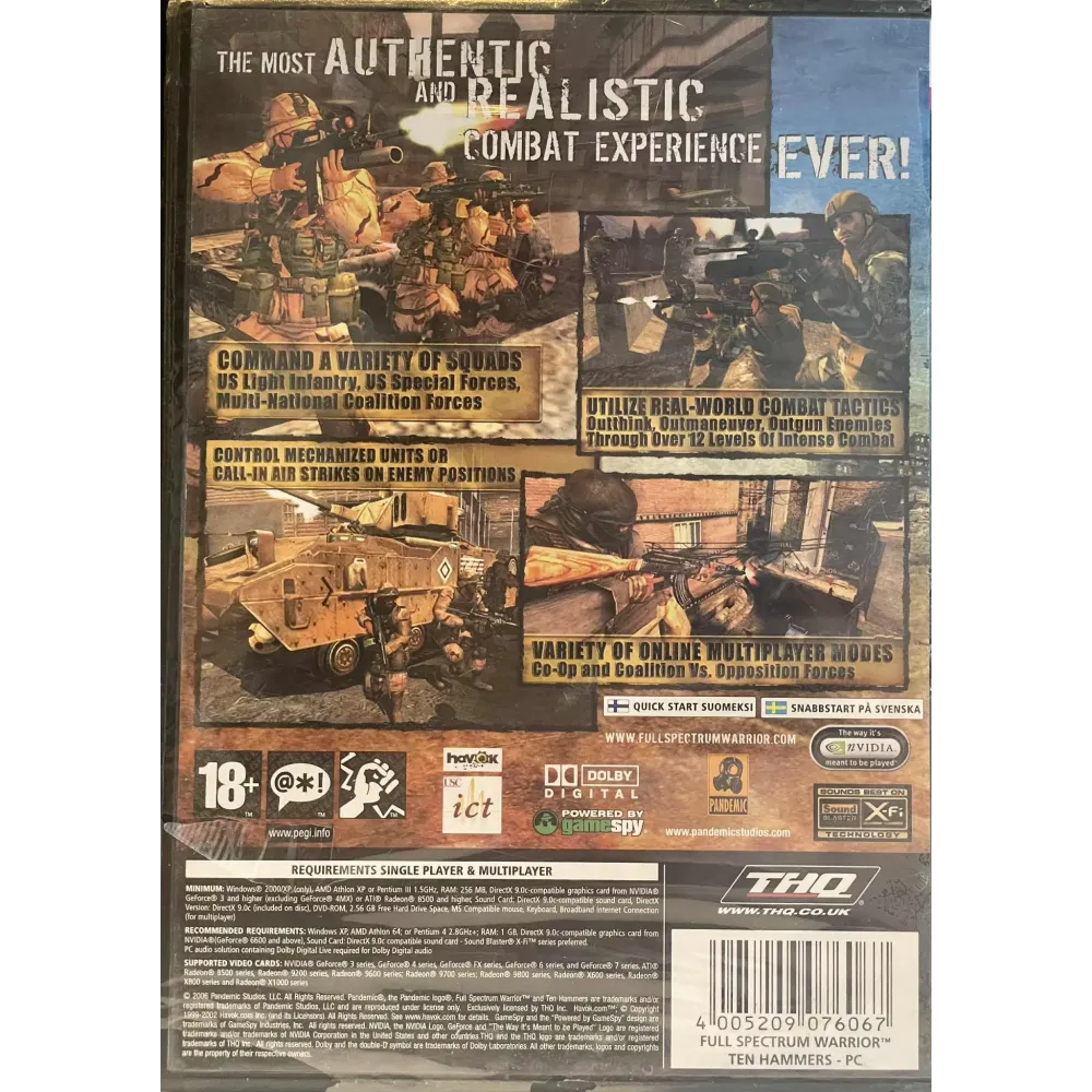 Utgitt av THQ og utviklet av Pandemic Studios (kjent for Star Wars: Battlefront), er Full Spectrum Warrior: Ten Hammers (2006) oppfølgeren til det prisvinnende originalspillet. Spillet bygger videre på et konsept utviklet i samarbeid med den amerikanske hæren – en realistisk simulering av taktisk krigføring der du leder soldater fremfor å skyte selv.