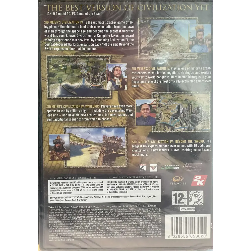 Utviklet av Firaxis Games og utgitt av 2K Games, representerer Civilization IV et av høydepunktene i strategisjangeren. Dette er Complete Edition, som inkluderer: