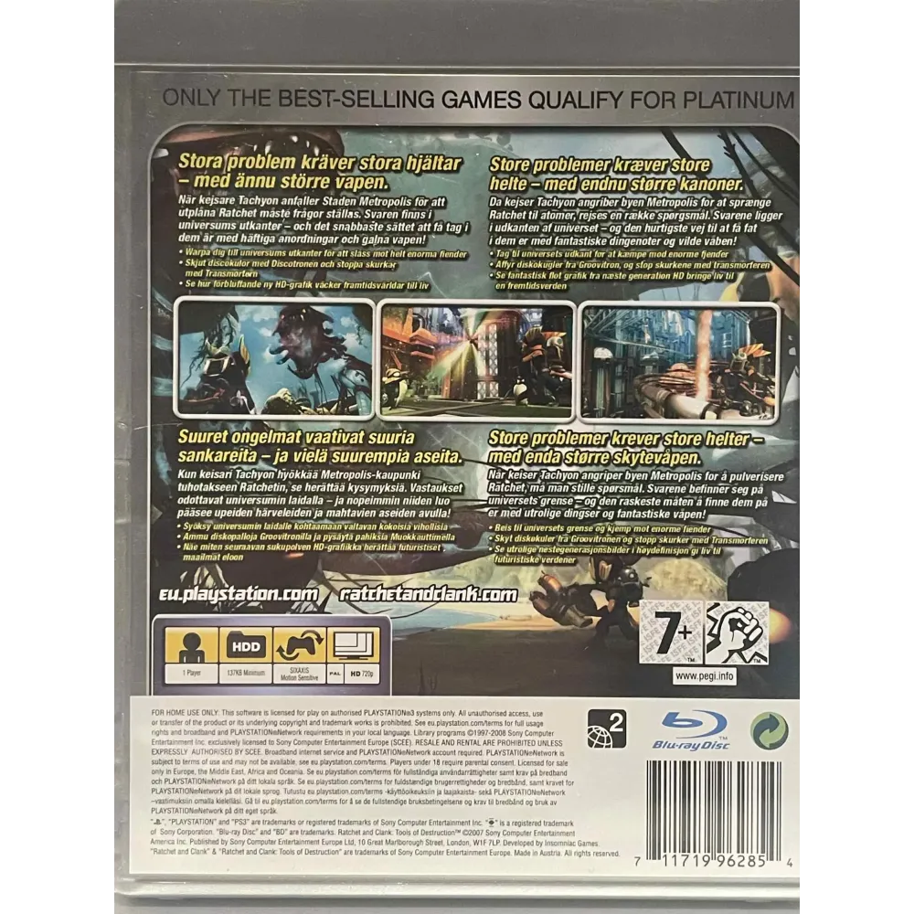 Klassisk sci-fi-action med humor og eksplosive våpen! I Ratchet & Clank: Tools of Destruction får du utforske galaksen i høyoppløste miljøer, oppgradere et arsenal av gale våpen og møte nye fiender i et eventyr laget eksklusivt for PlayStation 3.