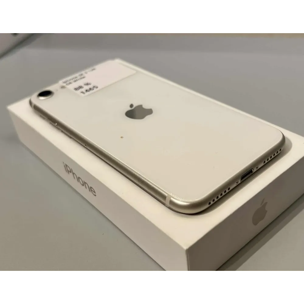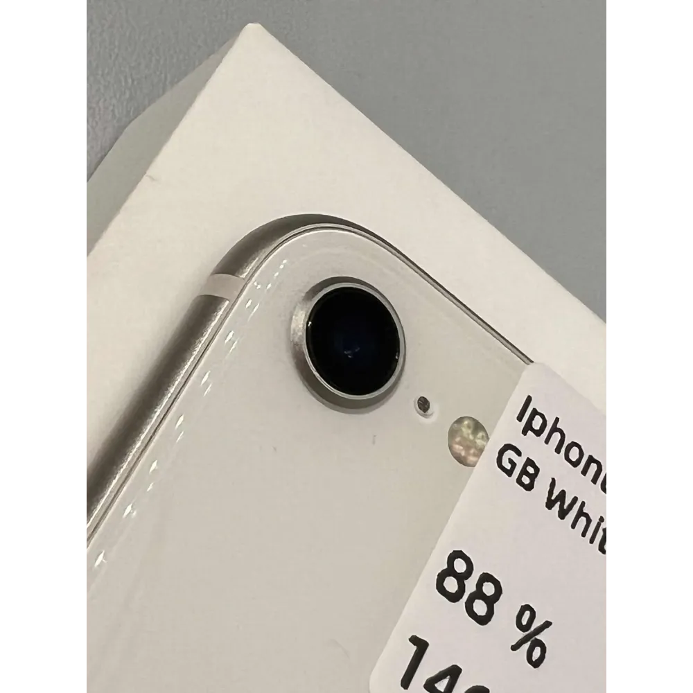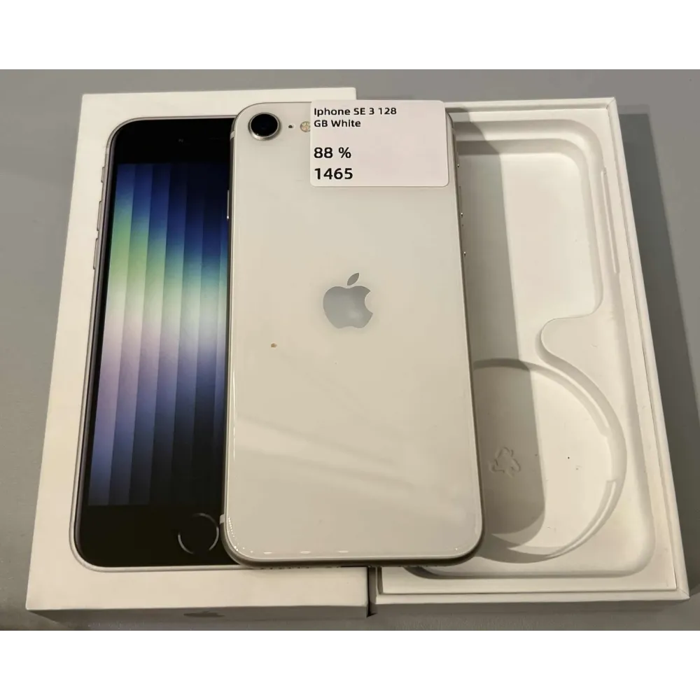 Selger en pent brukt iPhone SE 3. gen i hvit med 128GB lagring.