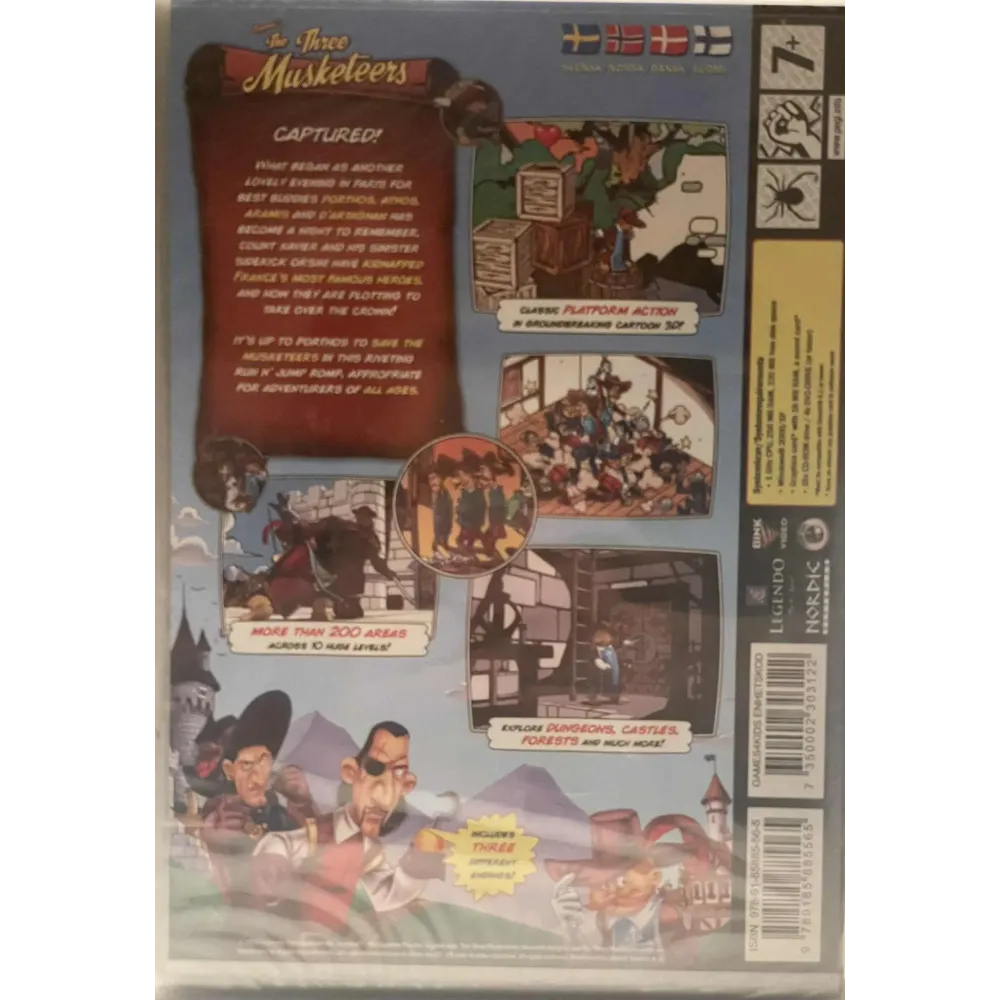 I denne familiesvennlige plattform- og eventyropplevelsen, basert på Alexandre Dumas’ klassiker, følger du Porthos, Athos og Aramis gjennom en rekke utfordringer for å redde Frankrike fra skumle skurker. Spillet er designet for yngre spillere i Games4Kids-serien, med enkel styring og tegnefilmstil.