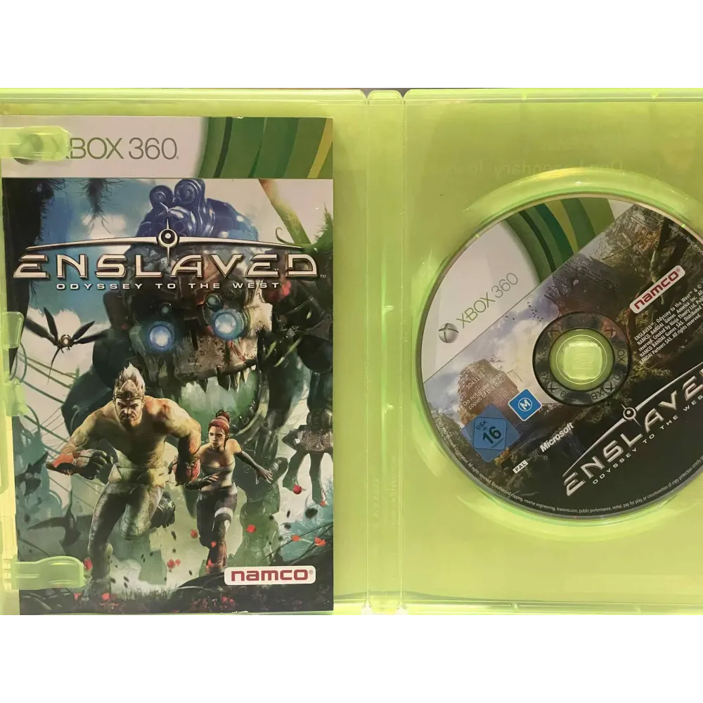 I Enslaved: Odyssey to the West spiller du som “Monkey”, en fysisk rå overlever som blir tvunget til å beskytte den teknologisk smarte Trip. Et slavebånd binder dere sammen – hvis Trip dør, dør du. Hvis du prøver å forlate henne, vil båndet tvinge deg tilbake.
