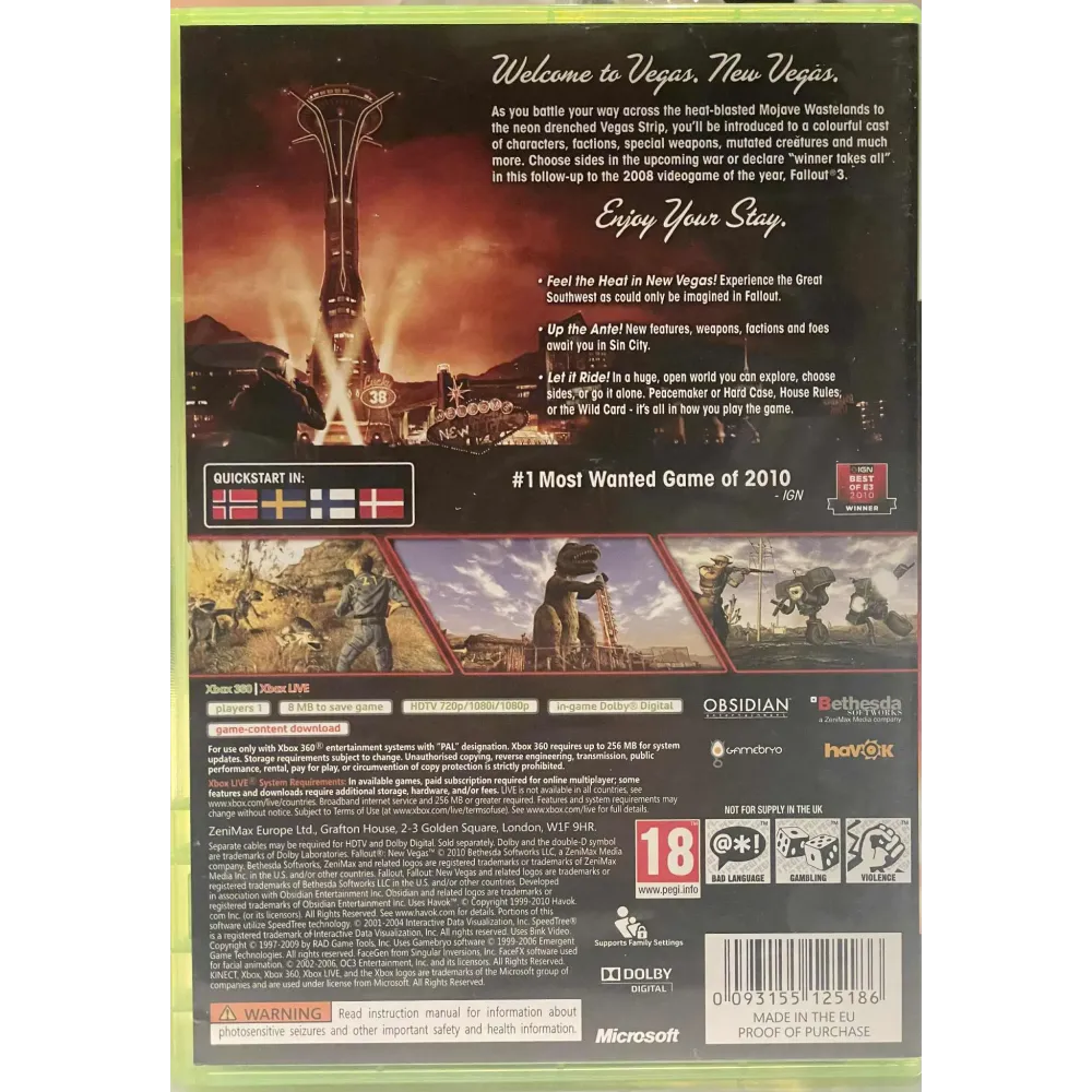 Fallout: New Vegas tar deg til en postapokalyptisk versjon av Nevada, der fraksjoner kjemper om kontrollen over Hoover-dammen og New Vegas Strip. Du spiller som en courier som blir skutt i hodet og etterlatt for å dø – men du overlever, og starter en hevnreise med store konsekvenser.