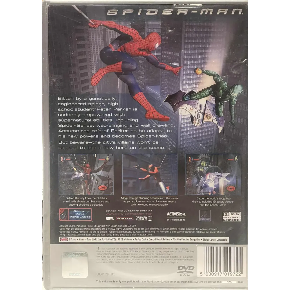 Spider-Man på PlayStation 2 følger handlingen fra filmen fra 2002, med Green Goblin som hovedfiende. Utforsk både bakkenivå og byens tak, bruk akrobatiske bevegelser og webslinging for å ta knekken på skurker — og redde de du bryr deg om. Fans av superhelter og Sony-generasjonen vil kjenne nostalgien med én gang.