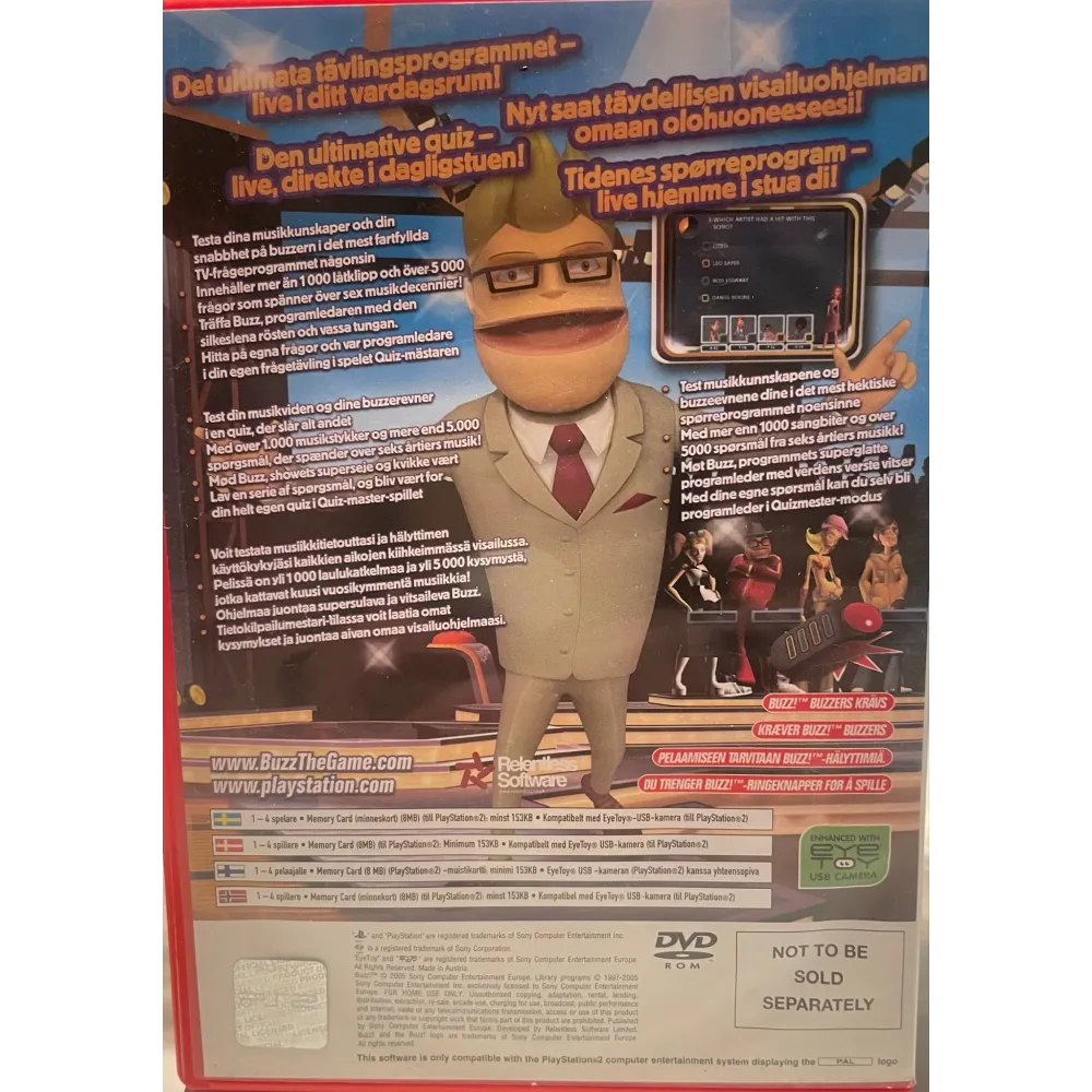 I Buzz: The Music Quiz for PlayStation 2 tar Buzz og hans assistent deg med inn i et fargerikt musikkshow med tusenvis av spørsmål og snikende musikkklipp. Spillet støtter 1–4 spillere via spesielle buzz-kontrollere, og lar deg kvesse hukommelse og reaksjonsevne i et levende gameshow-univers. Med over 5000 spørsmål og kreative spillrunder er dette det ideelle partyselskapet for både vennegjenger og familie.