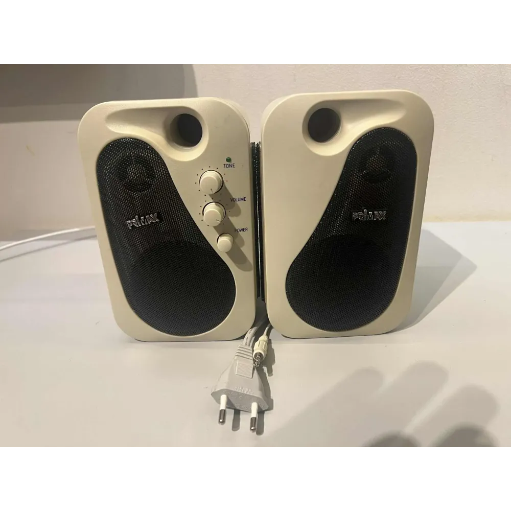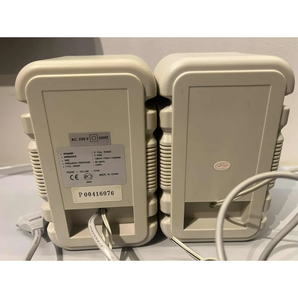 Kompakte og solide Primax-høyttalere i klassisk beige design.